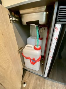 標準装備は、給排水設備、シンク、冷蔵庫、カセットコンロ、トイレなど置けるマルチルームも付いています