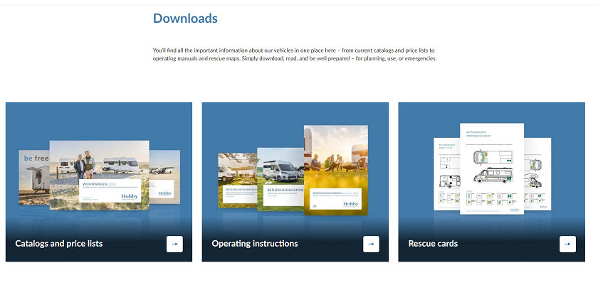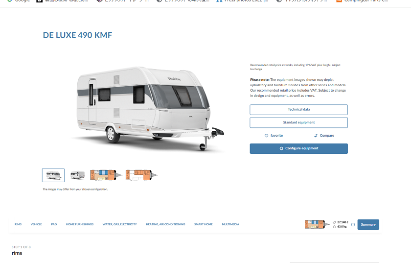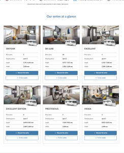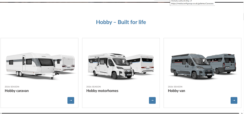 ホームページではCaravan・Motorhome・VANそれぞれのラインナップやモデルごとの詳細情報を確認する事ができます