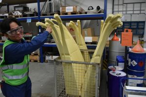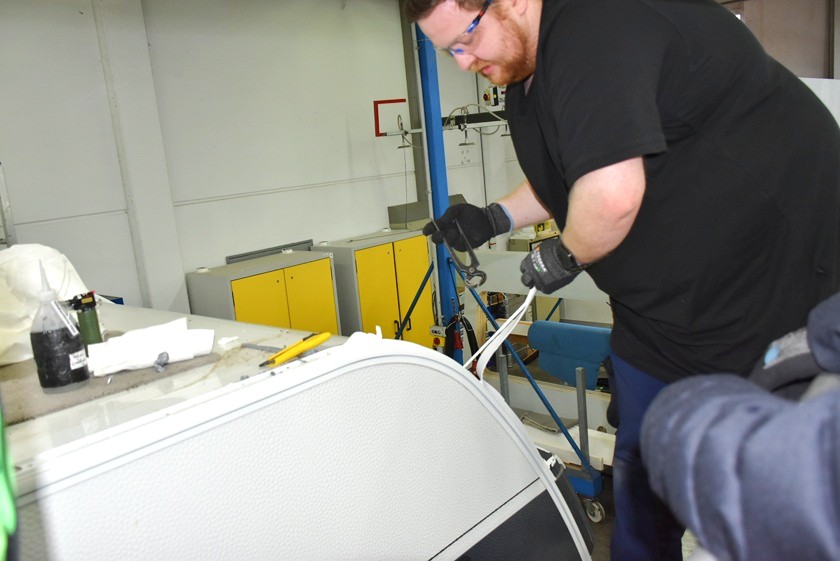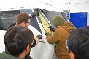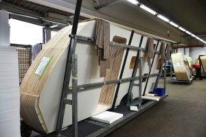 出来上がったサイドパネルは、傷などつかないようにコーティングされて丁寧に保管されます