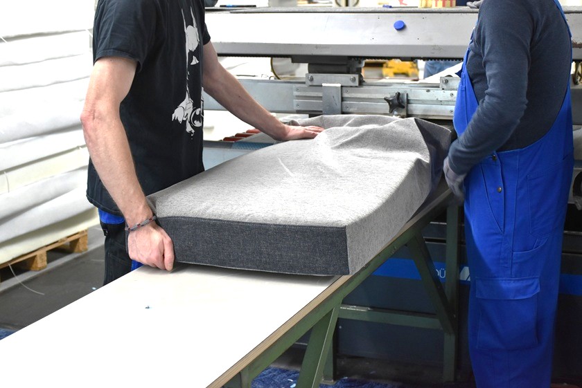 クッションに生地を被せるのは手ではなかなか入りませんが