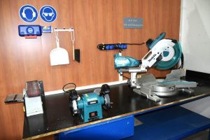 ワークショップへ入る際は、全員作業着・安全靴・ゴーグルの装着は必須です