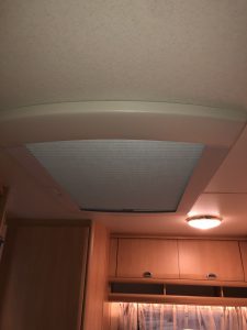 同様にフロント側の400㎜×400㎜の小さいタイプのルーフウインドウも劣化しておりましたので交換です。