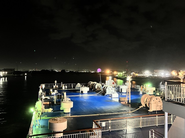 外は真っ暗になっており、仙台の夜景を見ながら出船です。