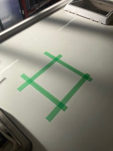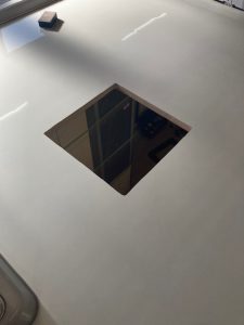 ルーフにカット寸法をマークし開口していきます。