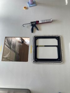 雨漏れが無いよう開口部はしっかり面取りと脱脂を行いブラケットを取り付けます。