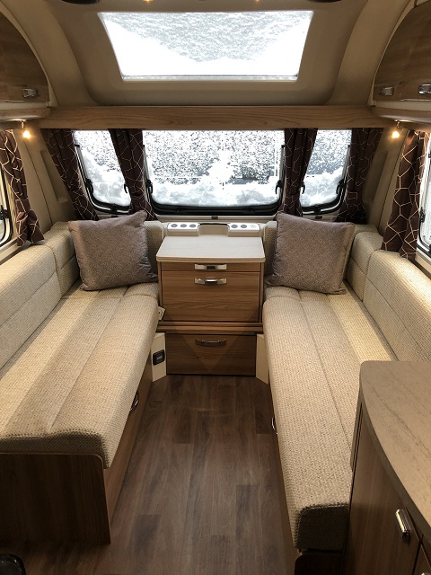 レイアウトは、真ん中にウォッシュルームがあり、後方中央にダブルベッドが設置された珍しいレイアウトです